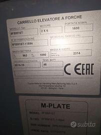 Carrello elevatore Toyota 8FBM16T , anno 2019 , portata 16q ,montante arriva altezza max 3300mm ,batterie ottime ,con certificato CE e caricabatterie ,cabinato , prezzo offerta €12500