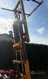 vendo come in foto a 1200 euro un muletto triplex con stringicassa marca agromec arriva aperto a 2,40 portata sui 10\12 quintali usato per cassette uva ad uso privato. ha solo attacchi rapidi idraulici funzionante e ha il traslatore