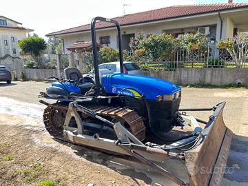 Vendo MERAVIGLIOSO ED INTROVABILE Trattore Cingolato marca New Holland modello TK 80 A Full Drive, larghezza carro 1,46 m, con pattini da 35 cm, ore di lavoro 4100 originali, unico proprietario,trattore originale in tutte le sue parti,tenuto maniacalmente, anno 2009,potente motore fiat iveco 4 cilindri 80 cv, cambio 16 marce con invertitore di marcia, modello FULL DRIVE che comanda sia le frizioni di sterzo che i freni, freni e frizioni a bagno d'olio,pto 540 e 750 giri,frizione della fresa separata,lift o' matic, 6 attacchi idraulici, doppio Serbatoio,completo di Apripista Sigma 4 a sgancio rapido montata nuova nel 2024 super accessoriata con lama da 2.30 m, il tutto in condizioni perfette,pronto al lavoro, tagliando totale appena eseguito, qualsiasi prova in campo con meccanico di fiducia, targa,libretto e roll-bar abbattibile, POSSIBILITÀ DI TRASPORTO IN TUTTA ITALIA, NO PERDITEMPO