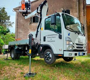 Prezzo giornaliero escluso consumi carburante entro i 50 km da ns. sede . Il ns. operatore esegue anche assistenza ai lavori da eseguire in quota. Noleggio Piattaforma autocarrata Scorpion 1812 H su Isuzu M21 anno 2022 con cabina climatizzata e possibbilità di funzionamento anche in elettrico a 220 v per ambienti chiusi o zone residenziali. Il mezzo ideale per diverse tipologie di interventi nei settori dell' illuminazione pubblica, edilizia, manutenzione del verde, ristrutturazioni edifici e capannoni ind. ecc. CARATTAREISTICHE :
