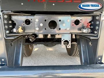 Allestito con ribaltabile trilaterale in acciaio da mt 4.50 x 2.55 con sfere antivibrazione e silenziate, sponde in alluminio rinforzate da cm 60 divise in due sezioni con piantoni smontabili a 2 leve, sponda posteriore con apertura a bandiera con rinforzo ad U, pianale in acciaio antiusura da 4mm, sabbiatura e verniciatura.