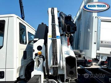 EURO 6E, cambio manuale 9 marce, versione K cantiere, sospensioni posteriori balestrate, bloccaggio differenziale, presa di forza ZF, expansion module, immobilizer, freno motore, climatizzatore, sedile conducente Top Confort molleggiato e bracciolo, vetri elettrici, specchi elettrici e riscaldati, chiusura centralizzata con telecomando, radio Bluetooth, luci diurne LED, tettuccio apribile, visiera parasole, fendinebbia, protezione radiatore, cronotachigrafo digitale, avvisatore acustico retromarcia, paraurti anteriore in lamiera, retine parafanali anteriori e posteriori, paraincastro posteriore tubolare, masse 1°asse kg 7500 2°asse 12.000kg, pneumatici 315/80 R 22.5 oltre altri accessori di serie.