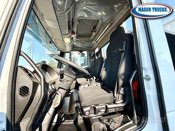 EURO 6E, cambio manuale 9 marce, versione K cantiere, sospensioni posteriori balestrate, bloccaggio differenziale, presa di forza ZF, expansion module, immobilizer, freno motore, climatizzatore, sedile conducente Top Confort molleggiato e bracciolo, vetri elettrici, specchi elettrici e riscaldati, chiusura centralizzata con telecomando, radio Bluetooth, luci diurne LED, tettuccio apribile, visiera parasole, fendinebbia, protezione radiatore, cronotachigrafo digitale, avvisatore acustico retromarcia, paraurti anteriore in lamiera, retine parafanali anteriori e posteriori, paraincastro posteriore tubolare, masse 1°asse kg 7500 2°asse 12.000kg, pneumatici 315/80 R 22.5 oltre altri accessori di serie.