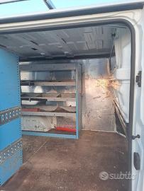 FURGONE ALLESTITO CON PORTAPACCHI SCAFFALI CASSETTI CASSETTIERE PIANO RIVESTITO IN LEGNO PIANO MORSA ESTRAIBILE ETC....