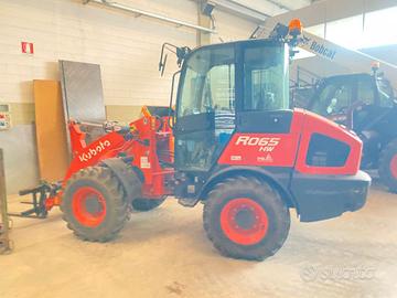 Pala gommata usata marca Kubota modello R065 anno 2022 ore 180,00 peso 53,00 quintali completa di forca benna e lama da neve con documenti libretto di circolazione condizioni come nuova