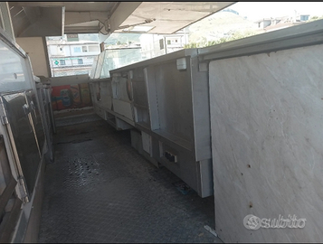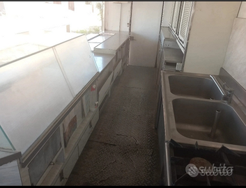 Vendo paninoteca ambulante come da foto, DA RISTRUTTURARE, composta da: banco-vetrina da 6 metri con campana per porchetta e banco freddo-caldo e annessa di banco espositivo, materiale acciaio inox alimentare e vetro temperato, cappa in acciaio inox da 2,5 m con filtri, griglia per panini da 90 cm, vetrina frigo posteriore, patente C .....no perditempo, no trattabile e no spedizione vendo formula visto e piaciuto, NO OFFERTE ASSURDE