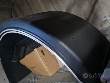 Coppia di n 2 Parafanghi neri satinati con bordino bianco, per ruote da camion 3 assi per ruota singola terzo asse oppure per rimorchi con gommone , NO Gemella. Modello DK 1675, misure in foto. Dispongo anche di vari parafanghi plastica o inox per gemelle e accessori vari.