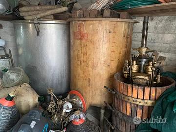 Pompa 200 euro per l'acqua e il vino per travaso del vino Torcolo a glicerina 500 euro non ha le forcelline ma idraulico a un tante atmosfere il prodotto lo schiaccia ancora di piùCisterna in acciaio per alimenti 500 euro una 30 quintali Vetroresina contenitore senza coperchio 10-quintali circa per alimenti a 200euro Motorino Ciao a 200 euro marca Piaggio (non è targato ovviamente quindi no libretto o lo avrei venduto a un prezzo piu alto quindi no perditempo o sognatori..non e grippato) Tutta roba ferma da anni Bilancie di vario tipo vendo a 200euro lunaPentole vendo in blocco 300 euro di tutto vendo insieme Ho foto e misure singole (vendo anche singolarmente) Ritiro a spese di chi acquista. chiamare per info e foto se realmente interessati