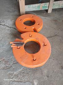 Vendo per inutilizzo zavorre per ruote anteriori trattore fiat 411r e similari,senza trazione. Misure e peso: Foro interno 190 Interasse fori 305 Diametro esterno 440 Peso 50 kg cadauna