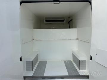 Veicolo isotermico con carrozzeria coibentata e gruppo frigorifero ZANOTTI modello Z380S-F. La cella frigorifera può essere raffreddata sia con il veicolo in movimento tramite un compressore collegato al motore, sia con il veicolo fermo tramite il collegamento alla rete elettrica 380w (funzionamento marcia/sosta). Furgone coibentato e refrigerato adatto al trasporto di derrate alimentari deperibili in regime di Atp FNAX . La temperatura raggiunta dalla cella isotermica è di 0 Gradi . La prima scadenza del certificato Atp è a GENNAIO 2028
