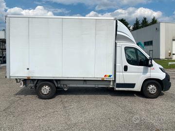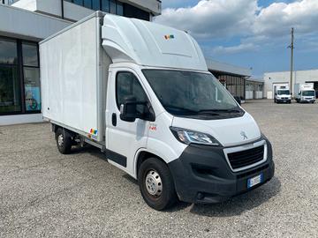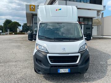 Peugeot Boxer, anno 10/2022, km 53.450, potenza 165 cv, cilindrata 2.2 cc Euro6d-Temp, clima, radio, cruise control, specchi retrovisori elettrici, 3 posti, bracciolo, alzacristalli elettrici, spoiler, cassone in lega leggera con rivestimento interno e barre fermacarico, porteposteriori il lega.