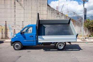 Piaggio porter NP6 300 allestito con ribaltabile trilaterale con impianto di sollevamento elettro/idraulico con pistone a 5 sfili alloggiato su culla in acciaio, pompa di sollevamento da 1700W con angolo di 45°.