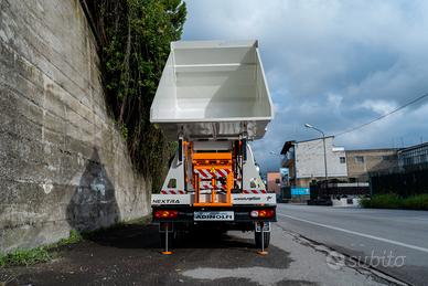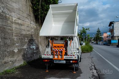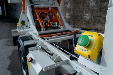 Vasca a totale tenuta stagna da 3 mc; - Sportelli laterali a destra e sinistra della vasca, da 76x50cm; - Controtelaio studiato e realizzato per sopportare tutte le sollecitazioni date dall'utilizzo quotidiano; - Piedini stabilizzatori posteriori idraulici che si azionano in fase di svuotamento della vasca; - Dispositivo volta-bidoni posteriore a PETTINE SINGOLO per il sollevamento di bidoni da 120, 240 e 360 litri; - Pulsantiera di comando a filo per il ribaltamento della vasca, posizionata sul lato destro del veicolo, completa di pulsante verde ad azione mantenuta per la sua abilitazione; - Comandi per il sollevamento del dispositivo voltabidone, posizionati sul lato destro posteriore dell'attrezzatura, completi di pulsante verde ad azione mantenuta per la loro abilitazione; - Impianto oleodinamico completo di elettropompa, distributori, valvole di sicurezza e cilindri oleodinamici necessari al buon funzionamento dell'attrezzatura con particolare riferimento al "principio d'integrazione della sicurezza"; - Impianto elettrico completo sensori, spie e finecorsa idonei al completo controllo dell'attrezzatura, a NORMA CEI EN 60529; - Supporto per attrezzi lavoro (pala e scopa); - Puntone di sicurezza sotto-vasca; - Parafanghi e paraschizzi; - Faro rotante a luce gialla; - Pulsanti di STOP-EMERGENZA;