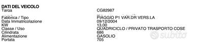 Vendo piaggio quargo con cassone ribaltabile tenuto bene e appena revisionato e tagliandato con 86000 km originali immatricolato a dicembre 2004 per info cell 327 268 4947