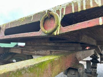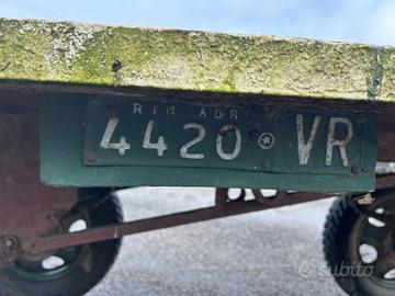 Rimorchio agricolo- fisso- 2 assi- anno 1960- portata 40 quintali- tara 8 quintali- misura del pianale 3,50m x 1,80m- targa e libretto- con ralla- gomme misura 7.00R20C quasi nuove- letto sano.