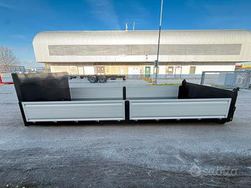 Pianale scarrabile nuovo rinforzato per carico macchine operatrici o attrezzature con sponde TR5 e portellone posteriore a triplice effetto (RAMPA-RIBALTA-BANDIERA)