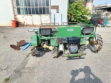 Macchina per piantare le patate a 3 file marca Castelli- si può usare anche a 2 o 1 fila- semovente con motore Lombardini a benzina- tutta idraulica- lunghezza complessiva 2,50m circa- usata poco- da ripulire il carburatore.
