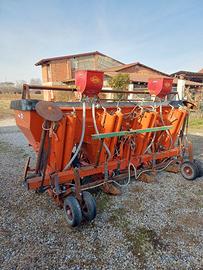 Seminapatate,cipolle per trattore con attacco a 3 punti, automatica, a 2 file ,distanza interfila 75 cm, (regolabile)profondità di semina e distanza sulla fila regolabile, assolcatori variabili, molto robusta , semplice , ha un funzionamento molto preciso. La seminatrice e una marca Tedesca in ottimo stato. Funziona con tutti tipi di patate intere, tagliate etc. Possibilità di trasporto a casa tua. Semina patate, pianta patate