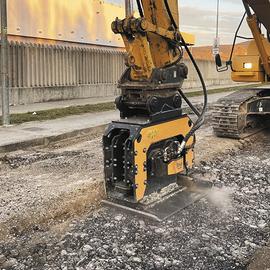 Piastra vibrante idonea per la compattazione di materiale di riempimento. Modello emmPB401, piastra 800*500 mm, peso 350 kg, portata olio 65 lt/min forza centrifuga 60 KN, produzione italiana, certificazione CE. La nostra linea comprende per escavatore benna, pinza, pedane e rampe da carico, trincia, martello demolitore, trivella idraulica, cingoli, fresa, ruota simex, demolitrice, frantumatrice, forche, fresa ceppi, battipalo, miscelatrice, spazzatrice, cesoia e selezionatrice