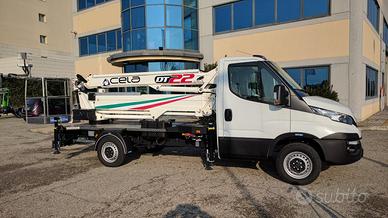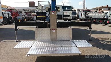 Piattaforma aerea CELA DT 22 con doppio braccio telescopico, altezza massima di lavoro mt. 22,00, sbraccio massimo mt. 9,50 con 230 kg con traverse estese e non, punto di snodo a 14 metri. Comandi elettroidraulici proporzionali compensati con flow sharing, pompa d'emergenza manuale, rotazione torretta continua. Cestello standard di dimensioni 1400 x 700 x 1100 mm., presa 230 V., rotazione cestello 90°+90°, comandi a controllo elettronico, piano di calpestio in lamiera antisdrucciolevole, comando in cesto per avvisatore acustico e avvio e spegnimento motore autocarro. Teleassistenza con modem GSM, stabilizzazione automatica, lavoro sotto il piano stradale fino a 3 metri, Pianale con sponde in alluminio opzionale. DOCUMENTAZIONE IDONEA PER SBARCO IN QUOTA E OMOLOGAZIONE PER UTILIZZO CON GANCIO DI SOLLEVAMENTO 260 KG, Possibilità del cestello da mm 1800, 1400 e/o 700, piattaforma omologata per carico e scarico materialiPOSSIBILITA' DI ACCEDERE AL 45% DI CREDITO D'IMPOSTA CONPIANO DI TRANSIZIONE 5.0 CUMULABILE CON ULTERIORI CONTRIBUTICONTATTACI!Altre info e schede tecniche sul sito