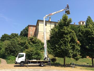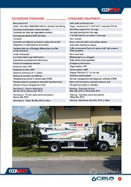 Piattaforma di lavoro aereo con doppio braccio telescopico con comandi elettroidraulici proporzionali compensati con flow sharing. Altezza massima di lavoro mt. 28, sbraccio massimo mt 14, rotazione continua della torretta completa di:distributore elettroidraulico proporzionale compensato con flow sharing; comando con distributore per il movimento indipendente degli stabilizzatori, cesto in alluminio a smontaggio rapido; interblocco manovre del braccio operatore da terra e nella piattaforma; presa elettrica 230 V. nel cestello; presa aria/acqua max 100 bar nel cestello; conta ore elettrico collegato al comando di innesto presa di forza; teleassistenza tramite nuovo sistema CRSS via GSM; stabilizzazione automatica; chiusura automatica. Navicella con portata max 350 kg ,possibilità di lavorare sotto il piano stradale fino a m 6, Documentazione idonea per sbarco in quota, possibilità di certificazione con gancio di sollevamento con 390 kg , piattaforma per carico materiali.Il tutto montato su veicolo Ptt 6 tonPOSSIBILITA' DI USUFRUIRE DEL 45% DI CREDITO D'IMPOSTA CON PIANO DI TRANSIZIONE 5.0, CUMULABILE AD ULTERIORI CONTRIBUTI CONTATTACI!Altre info e schede tecniche sul sito