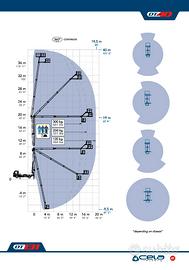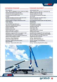 Altezza massima di lavoro mt. 39,50;Altezza piano di calpestio mt. 37,50;Sbraccio massimo di lavoro con traverse estese mt. 17;Rotazione torretta 1140°;Rotazione idraulica cesto 85° + 85°;Portata massima nel cesto kg. 300;Dimensioni cesto mm. 1800x700x1100;Installazione su veicoli aventi ptt.7,5 ton.Minimo;Comandi Elettronici.Piattaforma di lavoro aereo con doppio braccio telescopico con comandi elettroidraulici proporzionali compensati Cestello in alluminio a smontaggio rapido da 1800 x 700 x h. 1100 mm;Cestello con portata massima di 300 kg.;Comando avvio/arresto motore dal cestell0;Comando dal cestello per segnalatore acusticoComandi elettroidraulici proporzionali a gestione elettronica;Connessione elettrica 230V nel cesto;Contaore elettrico collegato alla PTO;Controllo anticollisione tra bracci e cabina del veicolo;Dispositivo di stabilizzazione automatica;Impianto idraulico a filtraggio differenziato con filtri ad alta efficienza;Pompa di emergenza manuale;Rotazione cestello ±85°;Rotazione torretta 1440°;Sistema di comando e controllo a can.bus ; Sistema multi assale per controllo visivo stabilizzazione;Teleassistenza remota tramite nuovo sistema Cela Remote Service System CRSS;Traverse anteriori e posteriori estensibili idraulicamente;Valvole di blocco flangiate sui cilindri;Verniciatura parte bracci e rinvii telescopici: Blu RAL 5013 oppure Bianco RAL 9010; Verniciatura cilindri, torretta e bielle: RAL 9010;Verniciatura telaio: Blu RAL 5013 oppure Nero;Corso di addestramento all'uso;Documentazione idonea per sbarco in quotaPOSSIBILITA' DI ACCEDERE AL 45% DI CREDITO D'IMPOSTA CON PIANO DI TRANSIZIONE 5.0 CUMULABILE CON ULTERIORI CONTRIBUTI!!