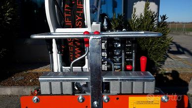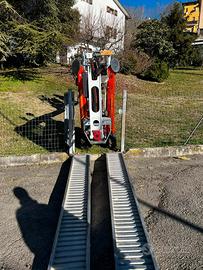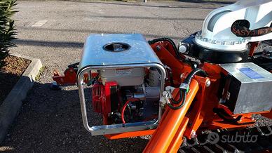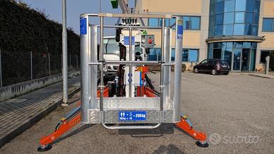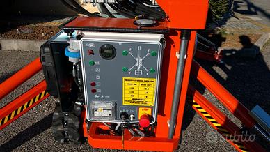 Altezza massima di lavoro: 12.20 m, Sbraccio massimo di lavoro (200 kg): 6.50 m, Rotazione torretta: 320' ,Cestello in alluminio 1100x700x1100 h mm con portata 200 Kg (2 operatori),Motore benzina: Honda 9.6 kW, Pendenza superabile in traslazione: 30%, Peso totale piattaforma: 1600 kg, Ingombro stabilizzatori a terra: 2600x2600 mm, Ingombri macchina a riposo: lunghezza 4250 mm - larghezza 890 mm - altezza 1980 mm ,Comandi idraulici e proporzionali, Valvole di blocco sui cilindri, Segnale acustico durante la traslazione, Comando di avviamento/spegnimento motore dal cestello, Pompa a mano per discesa di emergenza, Agganci per cinture di sicurezza sul cestello, Cingoli in gomma, Motore elettrico 220 V, Contaore, Presa aria/acqua, Presa elettrica 220 V, cingoli allargabili, rotazione navicella, Verniciatura standard Certificazione CE, Manuale uso e manutenzione, altre info e schede tecniche sul sito. POSSIBILITA' DI ACCEDERE al credito d'imposta (Industria 4.0) cumulabile con ulteriori contributi. Contattaci!!!