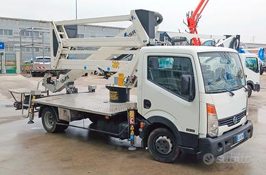 PiattaformaAerea marca GSR, modello E180PX, anno 2013, installata su veicolo NissanCabstar 35.12, anno 2013, targa EX062NF, km 73.300 circa, ore di lavoro 7125, altezzadi lavoro 18,00 m, sbraccio 7,60 m, portata 220 Kg, rotazione torretta 450°,rotazione cestello 70°+70°, dimensioni cestello mm 1400 x 700 x h 1100, comandielettro-idraulici proporzionali, stabilizzatori: in sagoma. Verifica di leggein corso di validità. Disponibile presso Savis Piattaforme Aeree.