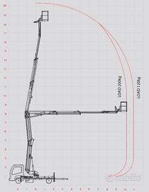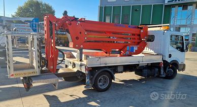 PiattaformaAerea marca RAM, Modello GEMINI 20.35 PTJ, anno 2012, installata su veicolo NissanCabstar 35.12, anno 2012, targa EK904WW, km 55500 circa, altezza di lavoro 20,35m, sbraccio 11,0 m, portata 200 Kg, rotazione torretta -/+ 200°, rotazionecestello 80°+80°, dimensioni cestello mm 1400 x 700 x h 1100, comandi elettro-idrauliciproporzionali, stabilizzatori H+H. Radiocomando. Verifica di legge in corso divalidità. Disponibile presso Savis Piattaforme Aeree.