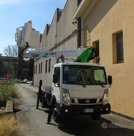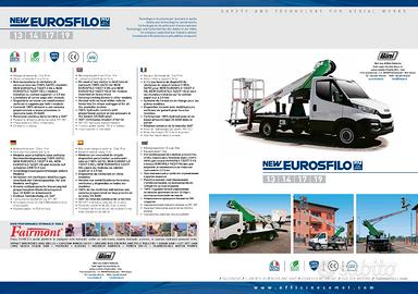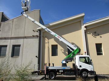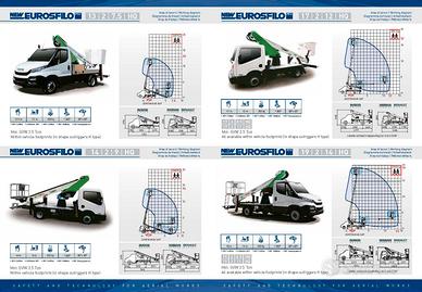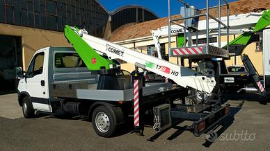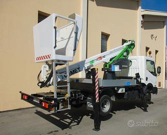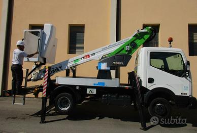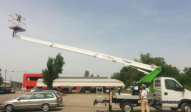 Altezza di lavoro 17 m, Sbraccio laterale 8 m, Altezza piano di calpestio navicella15 m, Portata in navicella 200 kg, Stabilizzatori idraulici n. 4 in sagoma, Rotazione 360° continua, Comandi 100% idraulici bassa pressione.