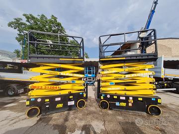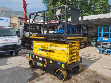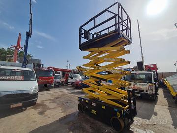 Piattaforma aerea elettrica tipo Scissor anno 2008, ore di lavoro 1.000. Altezza 14 metri, panchina allungabile di 1.50 metri, larghezza piattaforma 120 centimetri.