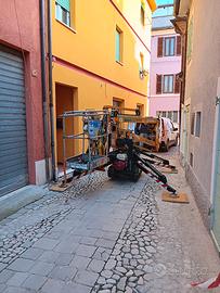Vendo piattaforma aerea cingolata ragno Oil&Steel mod. octopussy 1265 (altezza di lavoro 12 mt e sbraccio 6.5 mt) con jib, anno produzione 2003, portata max cesta 120kg (fornita solamente con cesta grande non quella in foto). Doppia motorizzazione: a benzina honda gx270 e elettrico con motore monofase 220V entrambi perfettamente funzionanti. VERIFICA VENTENNALE REGOLARMENTE ESEGUITA. Completa di tutti i documenti: CE, manuale uso e manutenzione, schemi elettrici e idraulici, esploso ricambi, ventennale e verifiche. Manutenzioni regolarmente eseguite. Vernice originale. Nessun difetto, ottimo stato di conservazione sempre tenuta riparata. Macchina attualmente in utilizzo disponibile per visione e prova. Oil&Steel, hinowa, easy lift, multitel, picchio, socage.