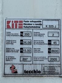 macchina perfetta - appena fatto verifica "ventennale "+ verifica annuale piattaforma rotante 180° dichiarazioni di conformità CE - verbali di collaudo, la macchina ha tutti i documenti in regola . Portata cestello 200Kg altezza di lavoro 25 mt.