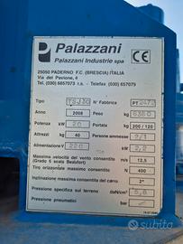Piattaforma Ragno Palazzani TSJ30 Anno 2008 1300h di lavoro Peso 6360Kg Motore diesel e elettrico Altezza di Lavoro 30mt Portata max 200kg (2 Persone) Rotazione 360º continui In Ottime condizioni Verifica Periodica VALIDA con radiocomando