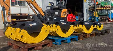Disponiamo in piazzale di una gamma completa di pinze forestali per legna, compatibili con escavatori, caricatori e gru.