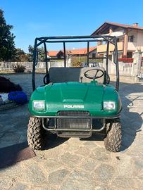 Polaris ranger 4x4 con 17ore di vita. È stato tenuto in garage per 15 anni. Perfettamente funzionante! Appena sostituita batteria e carburatore. NON HA LA TARGA, quindi non paga bollo ed è perfetto da utilizzare su terreni privati o nei boschi.