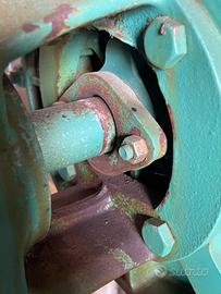 Pompa Tinti con moltiplicatore per irrigazione a 2 giranti con cavalletto , collo d'oca e gommone da 3 metri, aspirazione da 120 dm e mandata da 100 dm. Per trattore da 90/100 Hp.