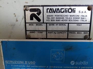 Ponte di sollevamento autocarri/macchine operatrici fino a 20t, marca Ravaglioli, anno 1987. Già smontato.