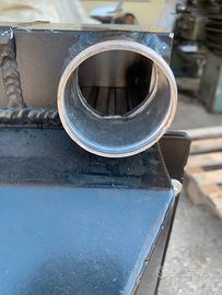 Radiatore nuovo per raffreddamento acqua e aria (Intercooler) può essere usato anche solo per raffreddamento acqua. Misure: Altezza cm. 70 larghezza cm 60, larghezza massa radiante acqua cm 50, larghezza massa radiante aria cm 10, diametro bocchettoni acqua mm 30, diametro bocchettoni aria mm 60 Spessore totale con convogliatore aria cm 24