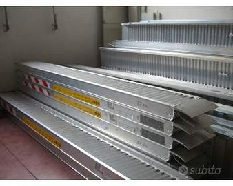 Rampe da Carico in Alluminio, Prodotto omologato, garantito e fabbricato interamente in Italia, Complete di fermi di sicurezza a sponda.