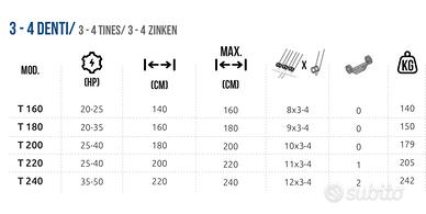I Ranghinatori serie T a tre/ quattro denti sono pensati per un uso più professionale, per trattori di piccola/ media potenza. Hanno un nastro a 2 cinghie con pettini a 3 o 4 denti e possono essere applicati sia posteriormente che anteriormente.
