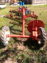 ranghinatore volta fieno trazione meccanica,modello piccolo facile da trainare anche con una falciatrice,gommato bene,usato pochissimo e tenuto sempre al coperto. adattabile a qualsiasi trattore,ottimo per piccole imprese agricole. In queste condizioni e questo modello inia a essere introvabile,