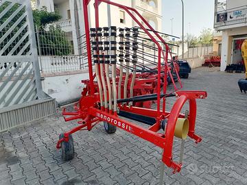 Ranghinatore/Giroandanatore Enorossi RR 320 Seminuovo, adatto a trattori da 35Cvin su, telaio attacco a 3 punti, 2 ruote, ammortizzatore della testata, larghezza di lavoro320 cm, 8 bracci con 3 molle per braccio, peso 355 kg.