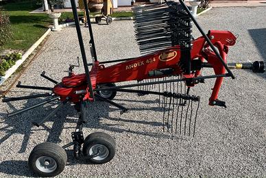 Ranghinatore Vicon Andex 434, 4,3 m di lavoro, 12 bracci, testata sterzante, assale tandem, completo di manuali e ce, nuovo fermo di magazzino, con garanzia.