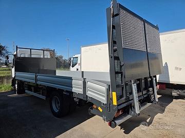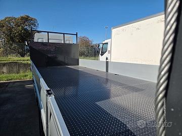 -cassone fisso/pianale da mt. 6,70 c.ca con sbalzo posteriore inclinato, sponde laterali in alluminio da 40 cm e rampe idrauliche posteriori doppio effetto.