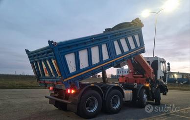 RENAULT KERAX 420 8X4 ANNO 2005 EURO 3 KM 145.000 CAMBIO MANUALE RIBALTABILE TRILATERALE ALLESTITO CON GRU DIETRO LA CABINA GRU PALFINGER MOD; 18500 GOMMATO AL 80% OTTIME CONDIZIONI.cell.