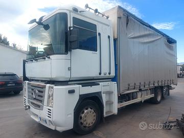 Motrice usata Renault Magnum 500 6x2, anno immatricolazione italia 2017, KM 1.328.089 al 15/06/2019, motore DXi 13 460 CV - 338 kW, cilindrata 12.130 C.C., cambio automatico, pneumatici 315/60 R22.5, cerchi in lega, aria condizionata, allestimento centina e telone sponda posteriore idraulica. S&O.
