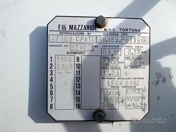 CISTERNA IN ALLUMINIO TRASPORTO CARBURANTI CAPACITA' TOTALE 12400 LITRI ( 2 SCOMPARTI 7100+5300 )