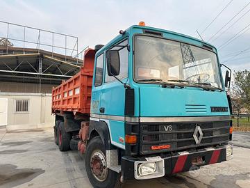 Renault R 420, 3 assi, 6x4, motore 8 cilindri V8, km 300.000 circa, ribaltabile trilaterale, campana per il traino, cabina letto, in buone condizioni.