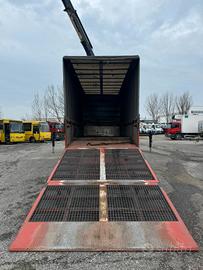 Renault T 380 Anno 12/2016 3 Assi 6x2 3° Asse sterzante + sollevabile Cassone per trasporto di macchine operatrici con doppia rampa idraulica Gru tipo HIAB XS 322 + 6 Sfili idraulici +4 piedi stabilizzatori + radiocomando Diesel Cambio Automatico Euro 6 Lunghezza interno cassone 6.500 mm Passo 4.350 mm Lunghezza totale autocarro 9.825 mm Portata utile 9.430 Kg Peso complessivo 26.000 Kg Motore 10.837 (6 Cilindri) Potenza 285 kW (380 CV) Pneumatici 315/70 R 22.5 Sospensioni posteriore pneumatica Cassone con centina spring Clima ABS Freno motore Radio Specchietti + Finestrini elettrici Km 535.000.